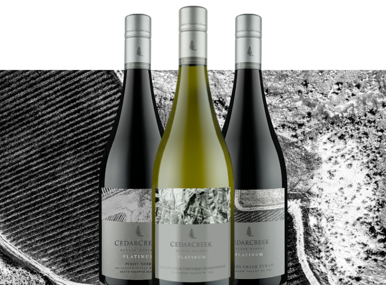 The Platinum Okanagan Collection features three of the region’s finest wines: Chardonnay, Pinot Noir, and Syrah, all crafted from carefully selected grapes from our vineyards within the Okanagan Valley. Each bottle reflects the elegance, balance, and distinctive character of the local terroir, offering a true expression of CedarCreek’s craftsmanship.